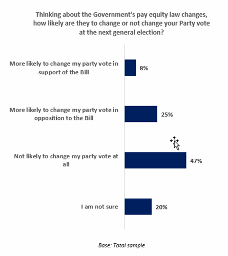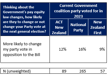 Overall, this suggests that, depending on the prominence of this issue at the time, the pay equity changes constitute a risk to the Government coalition parties at the next general election.